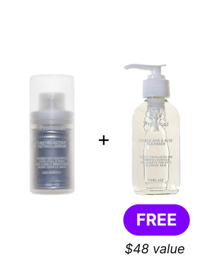 ¹ C. Rouvrais. Journal of Cosmetic Dermatology 2018 Dec;17(6):1136-1143All Protocol products are vegan, cruelty free, FDA health-safe and 100% recyclable through our Emptiez Recycling Program.
