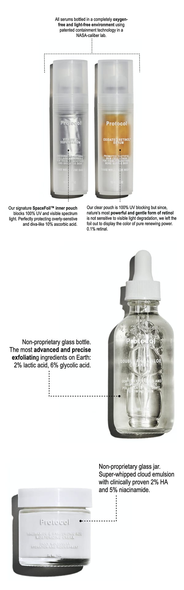 Excellent products. I learned about Protocol from a chemist and packaging expert. The way in which these products are packaged is just as important as what they contain. Both are top notch and I will order again.