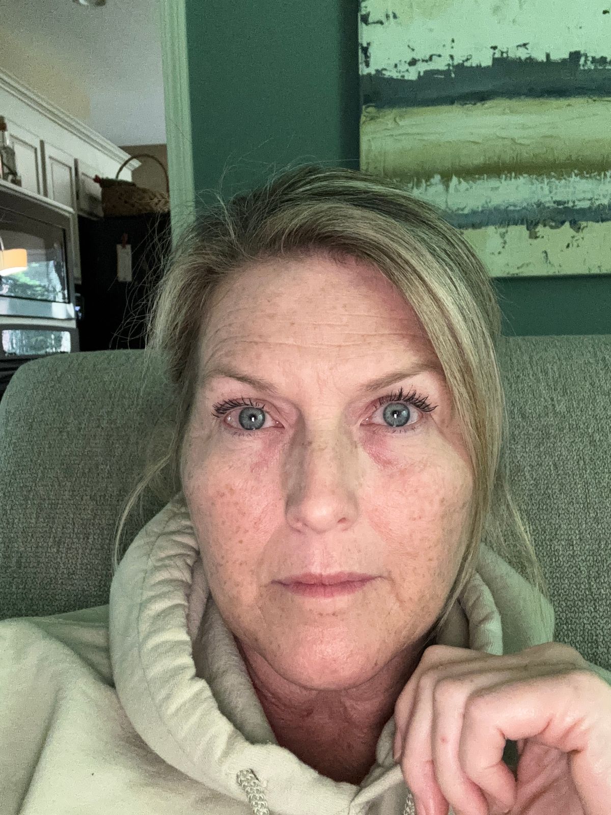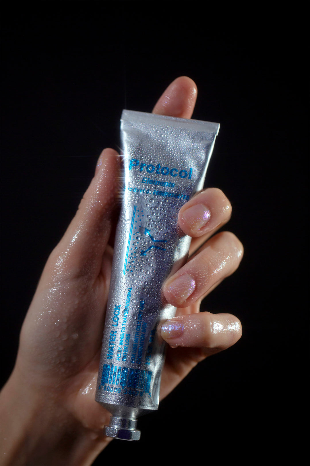 Now, I wash my face, spray on Magic Molecule, let that dry down, apply serums, and before they dry (I let them get to about 50% dry), I squeeze out about an inch of Water Lock and put it all over my face - under eyes, lids, brows - all of it.